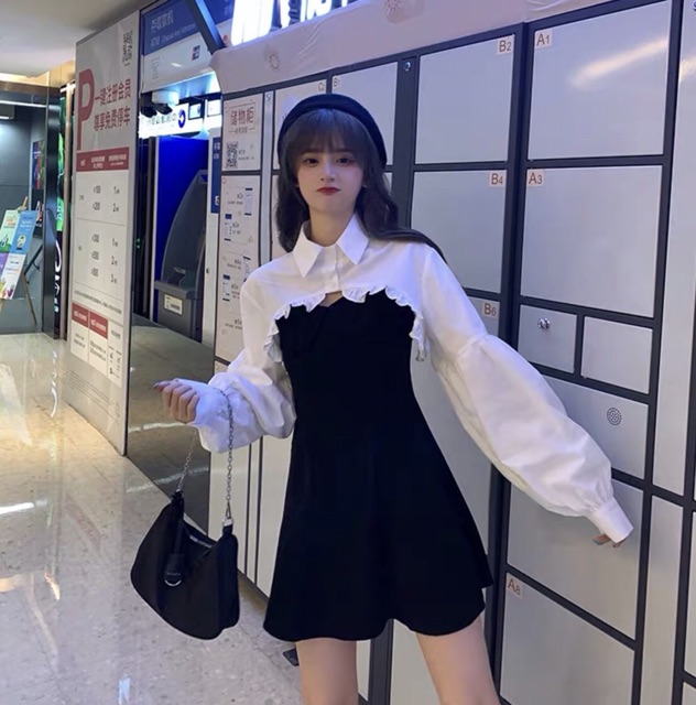 Giới thiệu Áo sơ mi tiểu thư tay dài hình thật+Đầm hai dây borip hình thật