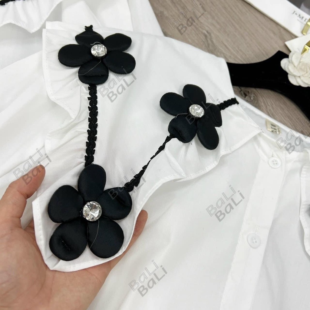 Thời Trang Nữ > Áo > Áo sơ mi || ÁO SƠ MI TRẮNG CỔ HOA ĐEN CHO NỮ