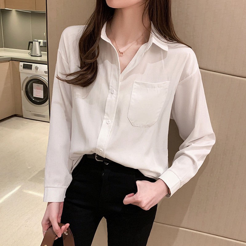 Thời Trang Nữ > Áo > Áo sơ mi || Áo sơ mi trắng dáng rộng tay dài phong cách hàn quốc kèm video ảnh thật
