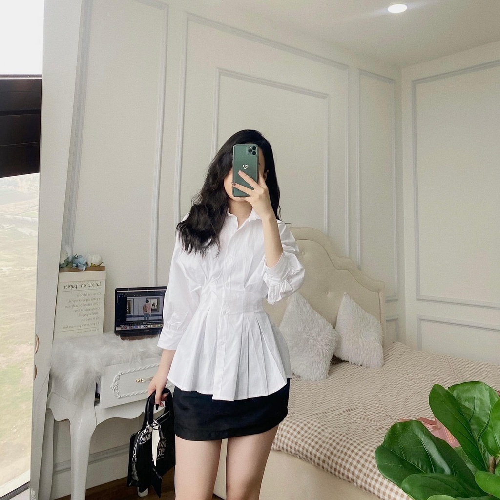 Giới thiệu Áo sơ mi trắng nữ nhún eo dáng xòe áo sơ mi nữ công sở LD023
