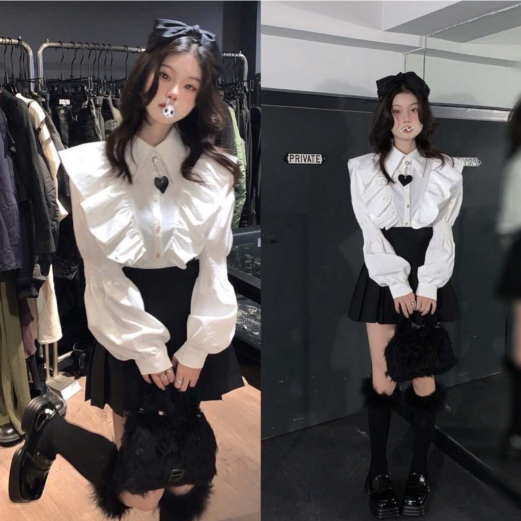 Áo sơ mi trắng phối bèo chất thô mềm mát somi nữ xinh xắn đẹp rẻ