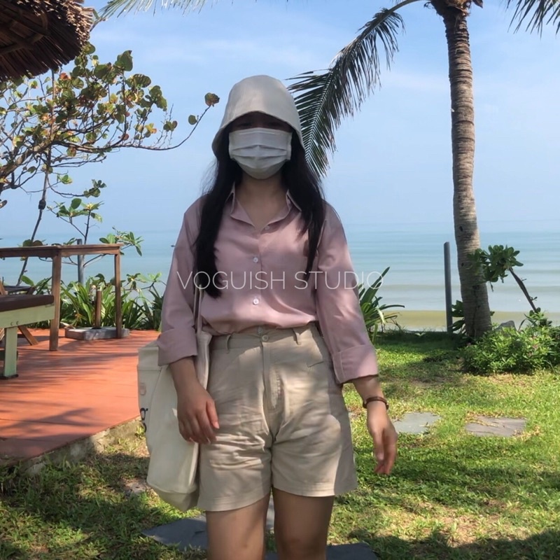 🏷️Tên sản phẩm: Áo Sơ Mi Vải Cotton Dài Tay Màu Hồng