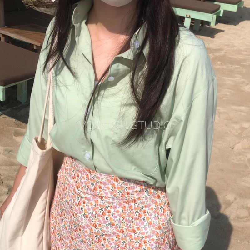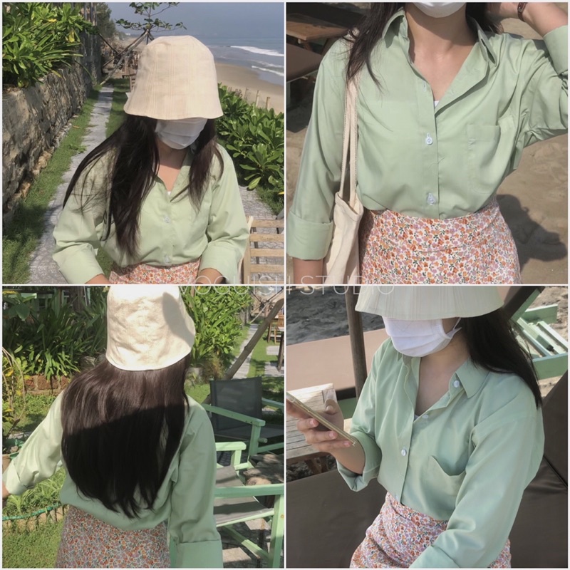 🏷️Tên sản phẩm: Áo Sơ Mi Vải Cotton Dài Tay Xanh Mint