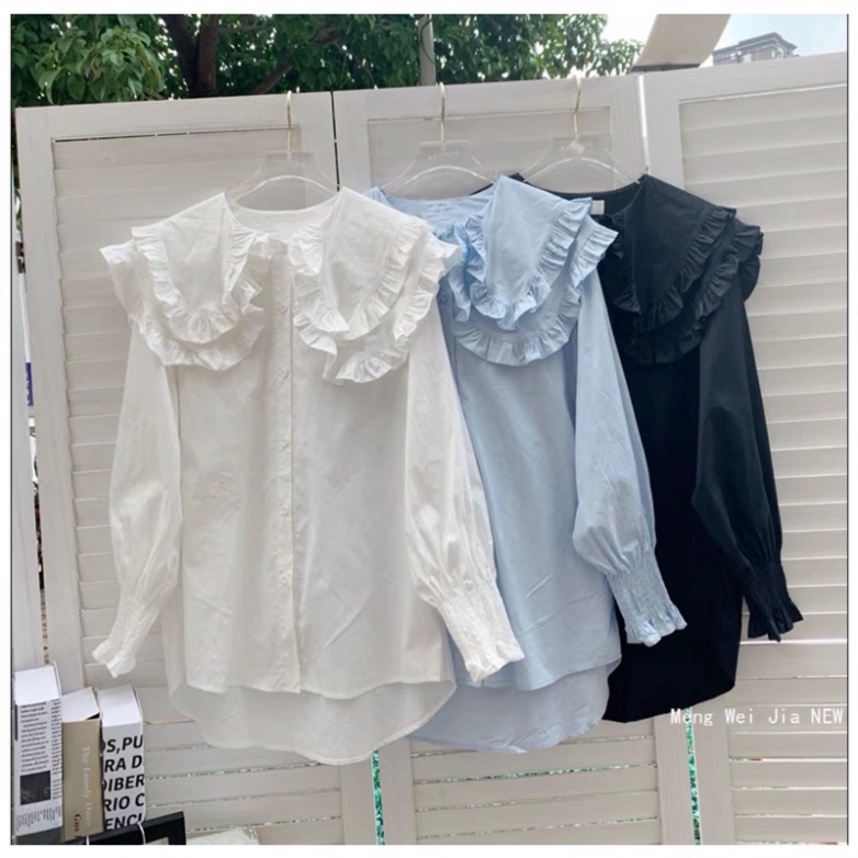 Giới thiệu Áo Sơmi Cổ Bèo Tay Phồng Tiểu Thư Tay Bo Chun_A016 mầu trắng, babydoll ulzzang mềm nội y xanh