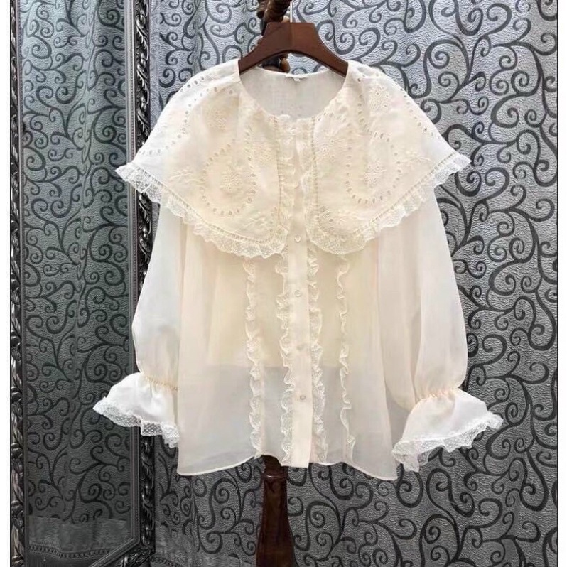 Thời Trang Nữ > Áo > Áo sơ mi || Áo sơmi cổ bèo thêu