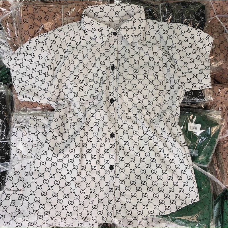 Thời Trang Nữ > Áo > Áo sơ mi || áo sơmi tay ngắn cổ bẻ in logo (hình thật shop Thảo Nhỏ Store chụp )