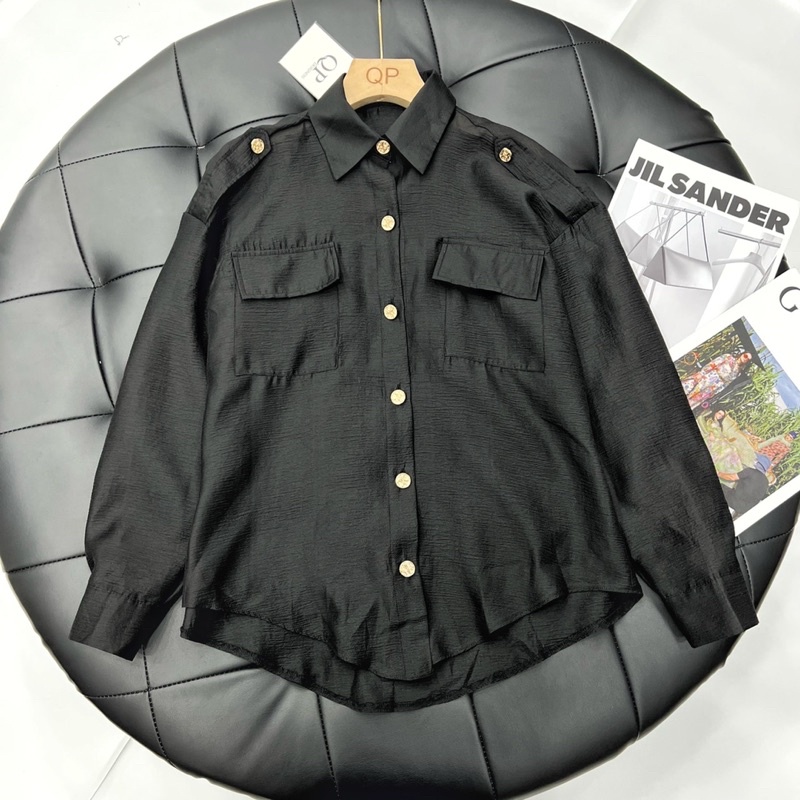 Thời Trang Nữ > Áo > Áo sơ mi || Áo sơmi tơ túi ngực cúc đồng