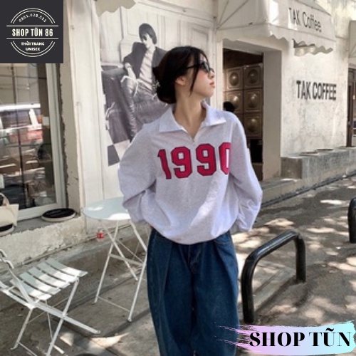 Giới thiệu Áo sweater polo dài tay unisex dưới 80kg chất thun SHOP TŨN - Áo polo dài tay phối khóa cổ 1990