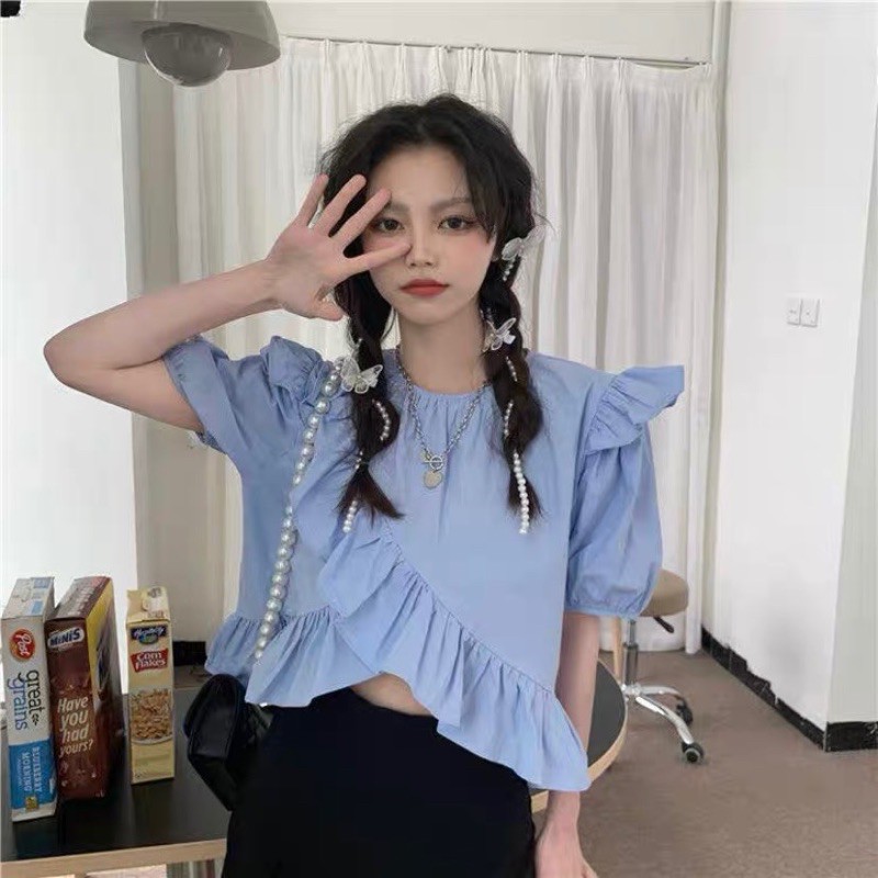 Áo thô bèo vạt chéo ngắn tay Ulzzang style Hàng quảng Châu