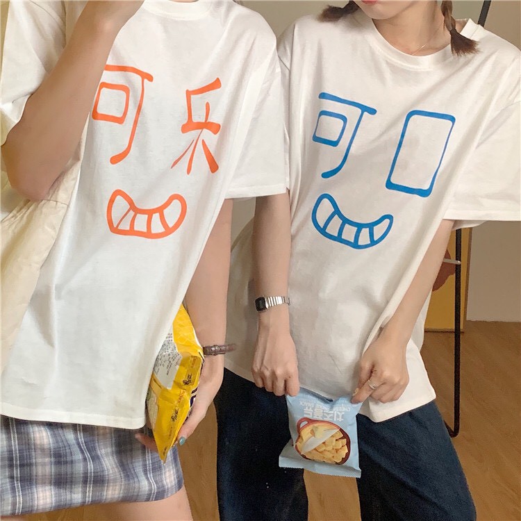 - Áo Thun Cặp Unisex Màu Trắng In Họa Tiết Khuôn Mặt