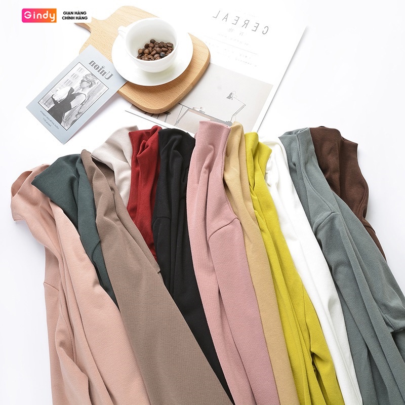 Giới thiệu Áo thun cổ cao 3 phân GINDY phông dài tay dáng ôm thu đông giữ nhiệt trơn basic co dãn 4 chiều A9117