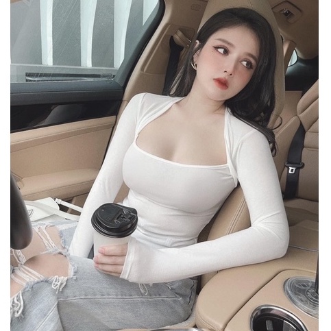 Giới thiệu Áo thun cổ vuông ôm dáng tôn vòng 1, Áo kiểu sexxy dài tay co giãn AS7169 - NhiNhi Shop