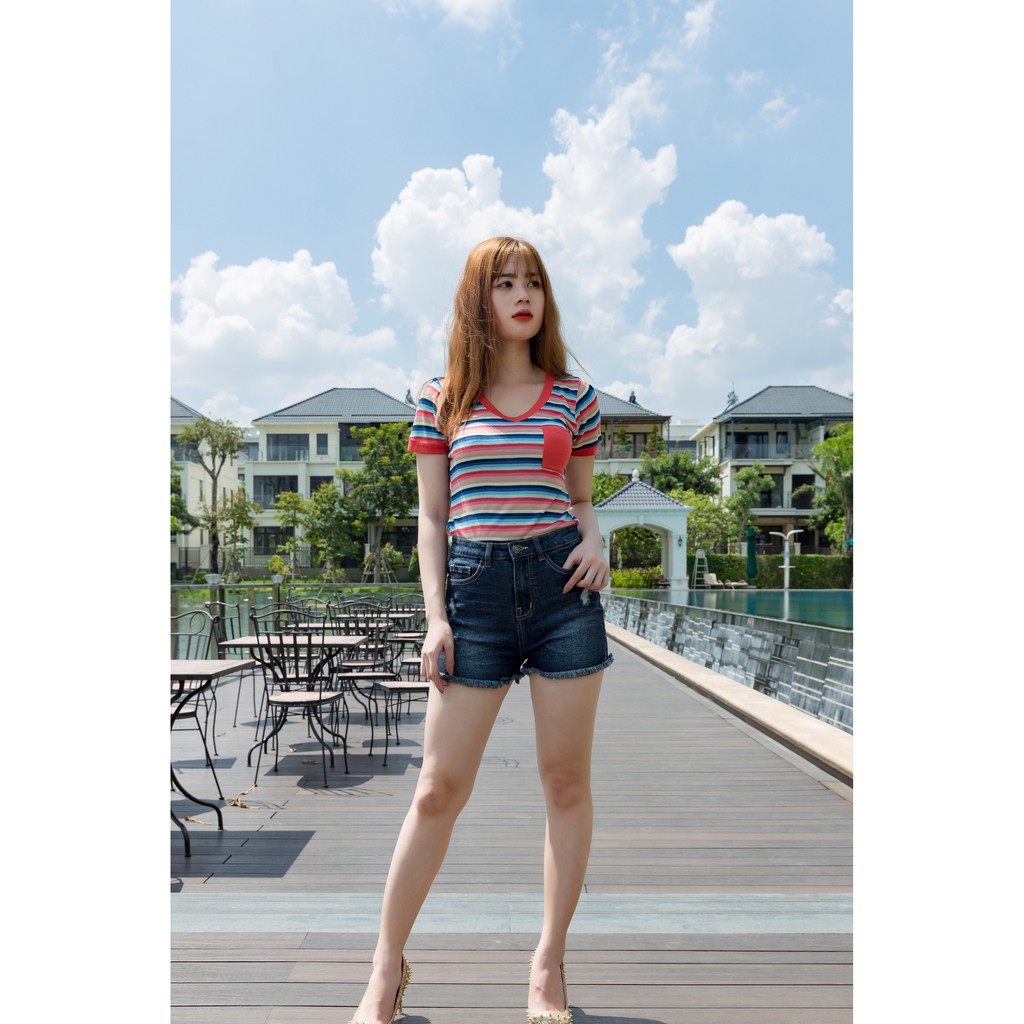 Form áo ôm nhẹ, cực kỳ tôn dáng & trẻ trung, kẻ ngang nên dễ phối đồ & mới rất lâu ạ 👍