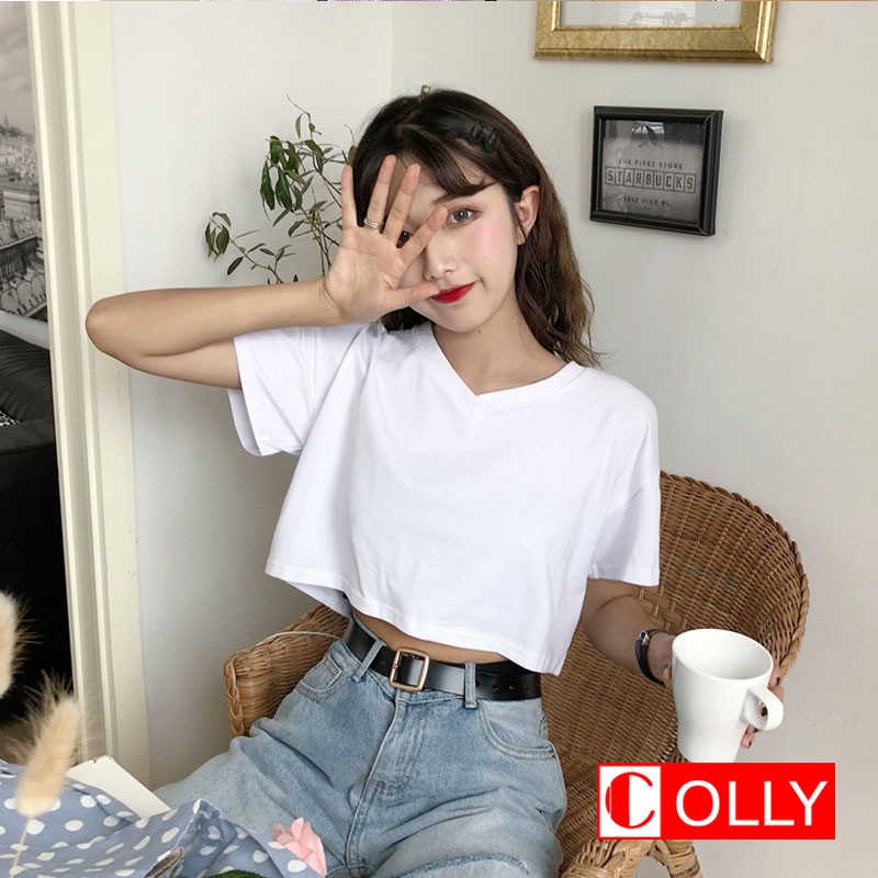 Giới thiệu Áo thun Croptop form rộng tay lỡ cổ tim cá tính - COLLY