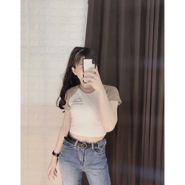 ♥️♥️ Áo thun crop thêu chữ tay phối màu