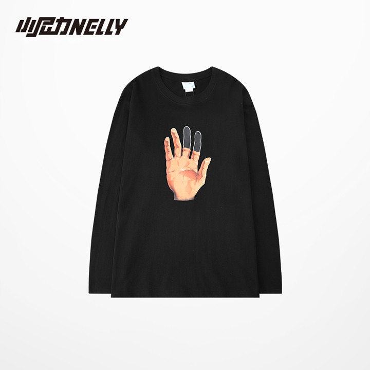 Giới thiệu Áo thun dài tay NELLY cotton 100% dáng unisex form rộng in hình bàn tay mã N0156