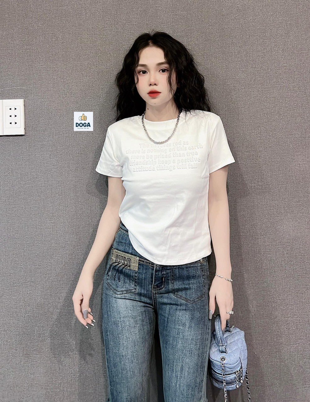 Kiểu dáng: dáng babytee ,Tay ngắn cổ tròn khỏe mạnh với đường viền cổ áo cổ điển.