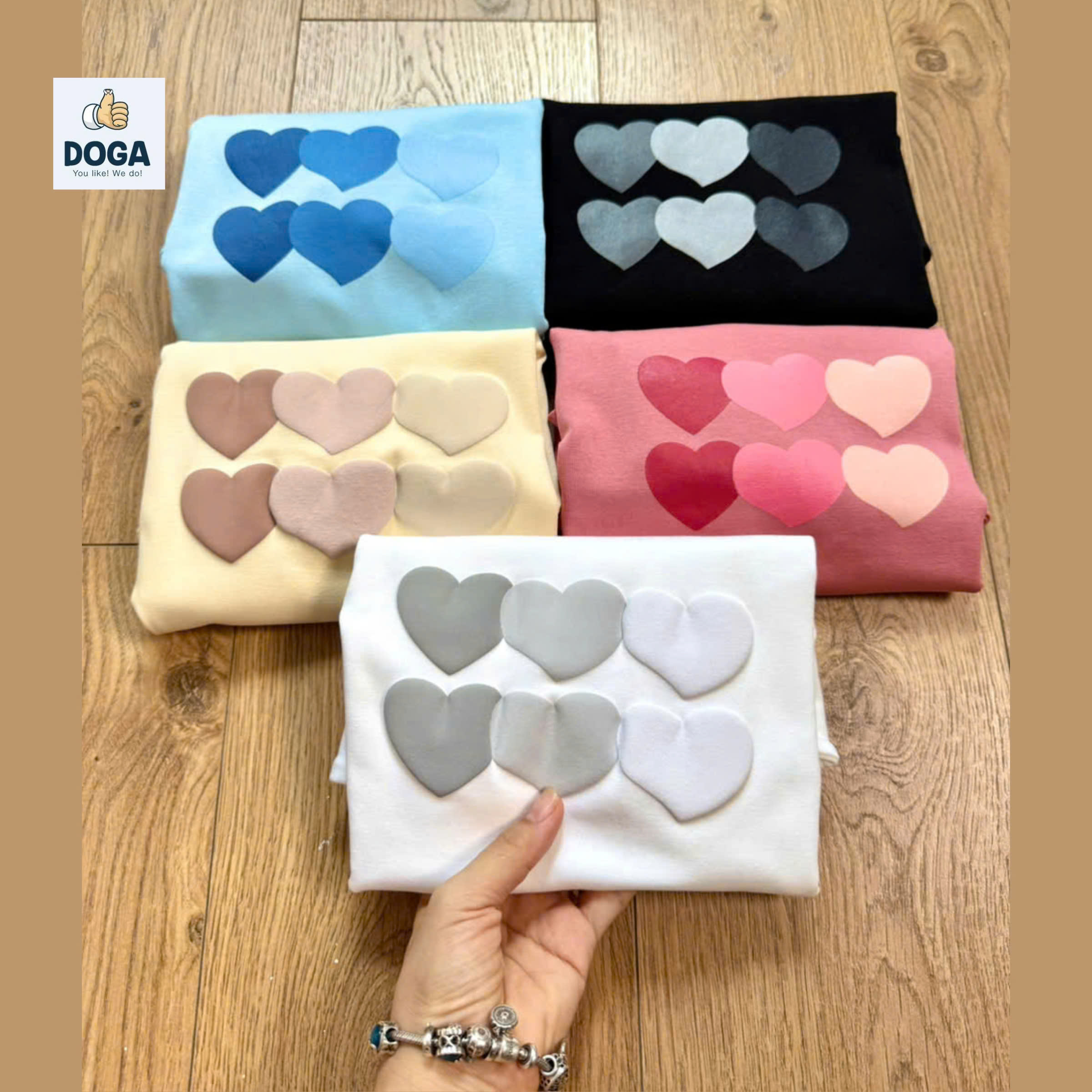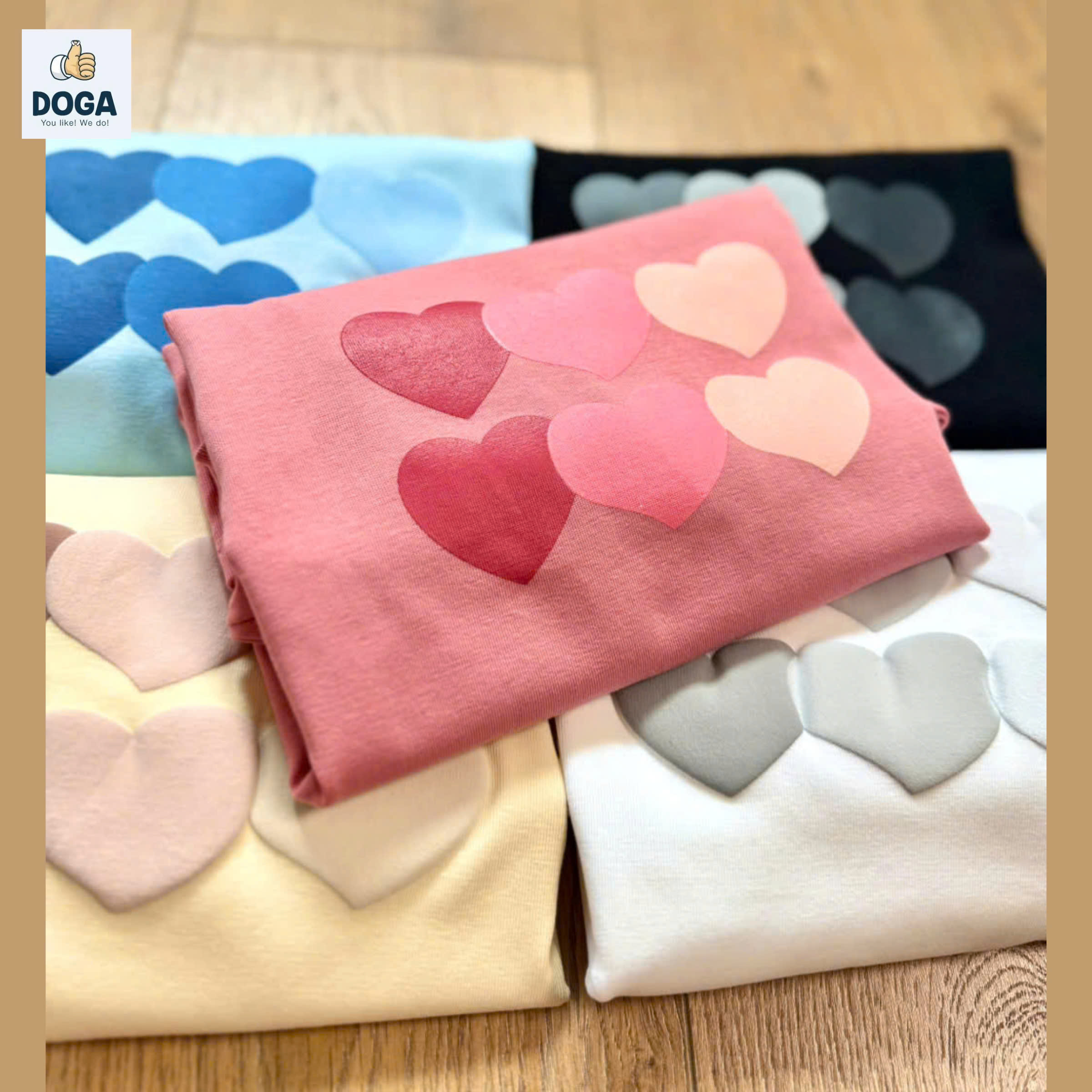 Áo Thun dáng baby tee có size 35kg đến 70kg chất BORIP COTTON Xịn điểm nhấn in trái tim nổi đủ size, nhiều màu M178