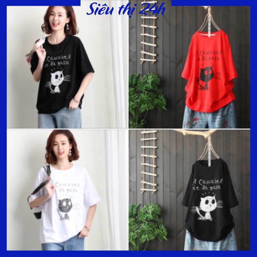 Giới thiệu Áo thun form rộng tay lỡ, áo phông unisex Siêu thị 24 giờ in hình Mèo, chữ Cascabel dela gaka