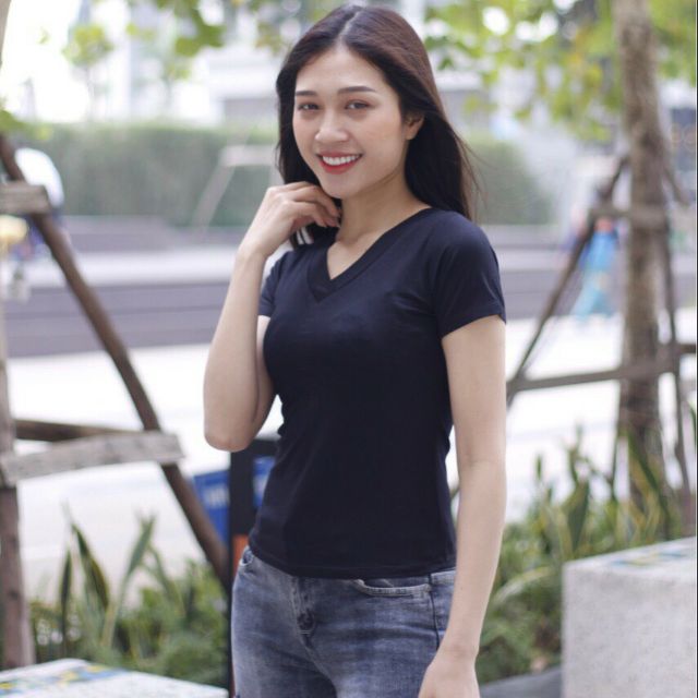 Giới thiệu áo thun nữ cổ tim [CHÍNH HÃNG]❤FREESHIP❤ Áo cotton trơn cổ tim, phom body ôm dáng. Hàng công ty Lendsead. Dáng basic