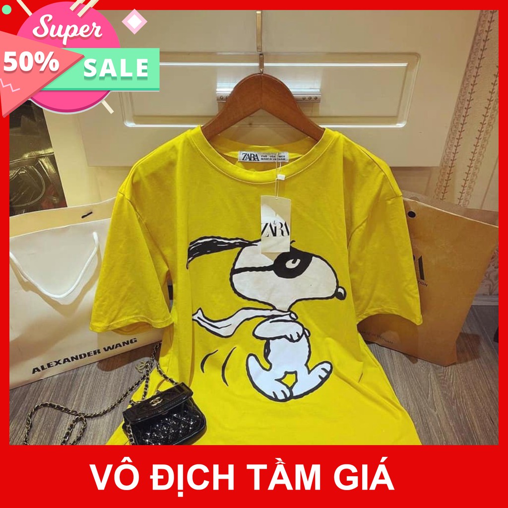 Thời Trang Nữ > Áo > Áo thun || Áo thun nữ from rộng cotton in hình Snoppy màu vàng trend 2021