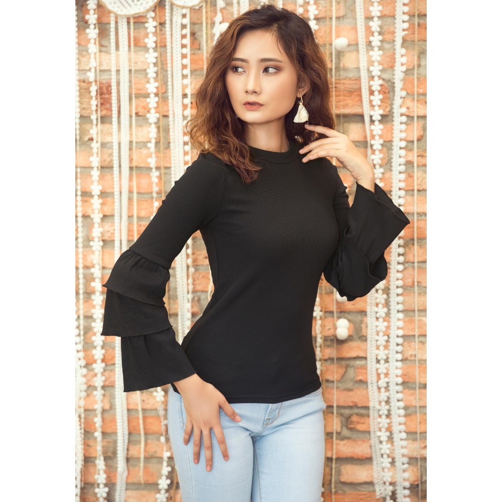 Giới thiệu Áo Thun Nữ Tay Dài, Cửa Tay Dún Bèo Loe Duyên Dáng LARINA T16
