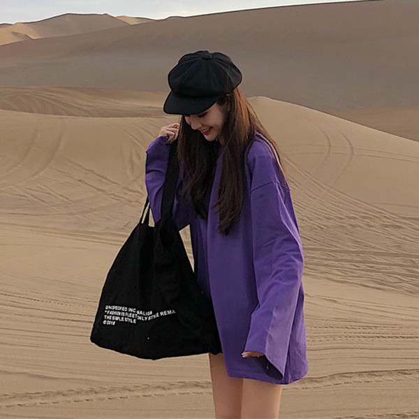 🔸️Phong cách: Áo Thun Nữ Phom Rộng Tay Dài Màu Trơn
