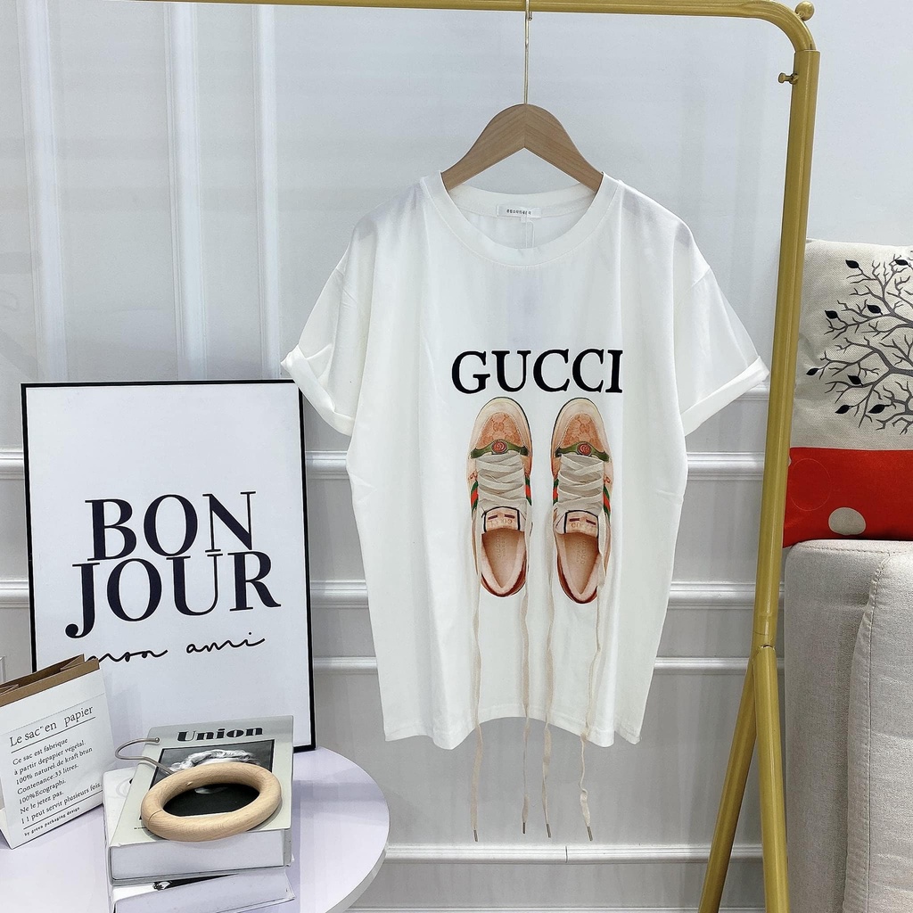 Giới thiệu Áo thun nữ tay lỡ hình giày form rộng phông unisex tay ngắn