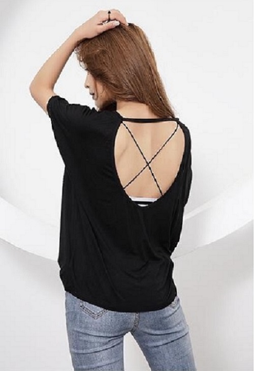 Kiểu dáng: áo form rộng, phần lưng hở gợi cảm, phong cách cá tính thời trang