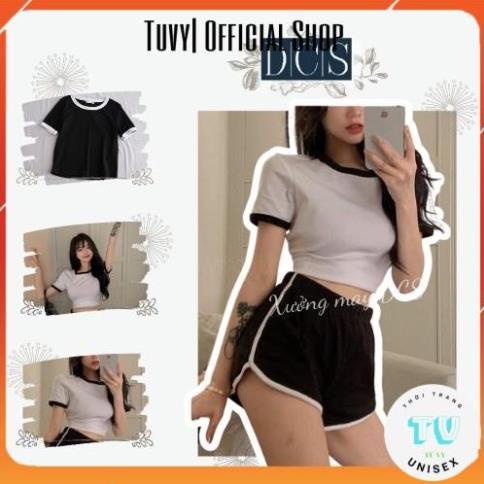 Giới thiệu Áo thun nữ TUVYSHOP Áo Croptop Tay Ngắn Dáng Ôm Phối Viền Cổ 2 Màu Đen Trắng size S-XL