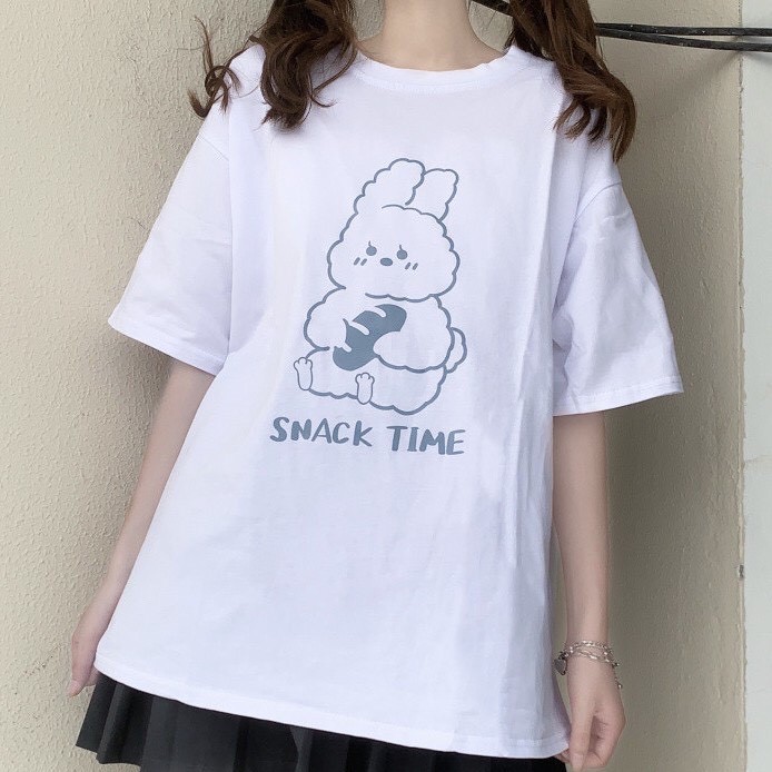 Giới thiệu Áo thun tay lỡ 194SHOP Unisex vải coton dày dặn, co dãn, form rộng - Thỏ Snack Time