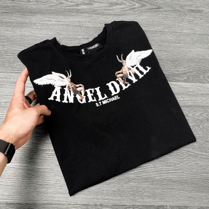 ÁO THUN TAY LỠ ANGEL DEVIL , ÁO THUN COTTON NAM NƯ UNISEX, ( hình chụp thật )
