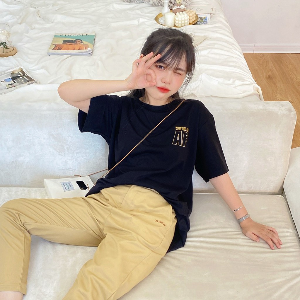 Giới thiệu Áo thun tay lỡ in chữ AF đen form rộng cá tính ulzzang - Made by Fiin