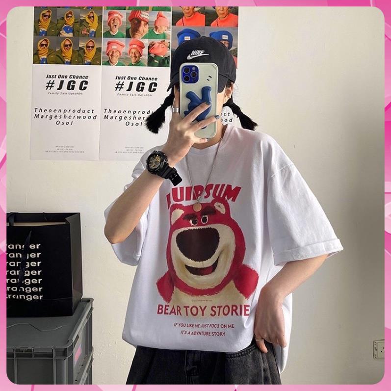 Giới thiệu Áo thun tay lỡ nam nữ, áo phông unisex form rộng chất cotton mát mịn thấm hút mồ hôi in hình GẤU XANH