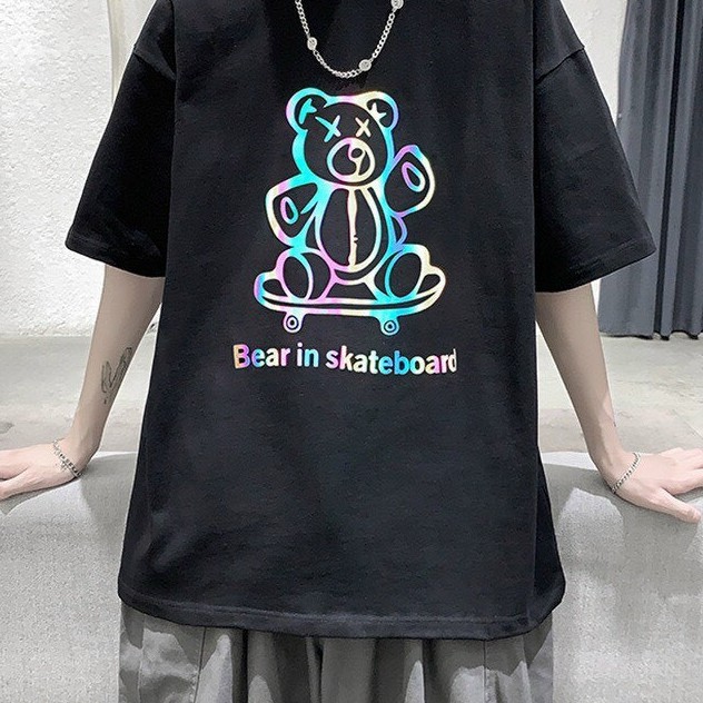 Giới thiệu Áo Thun Tay Lỡ phản quang Bear In Skateboard Phản Quang 7 Màu Đa Sắc