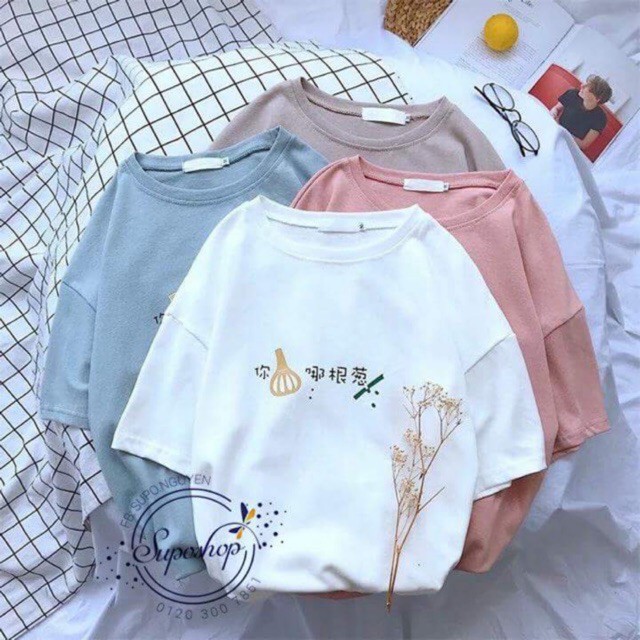 Giới thiệu Áo thun tay lỡ phông Unisex nam nữ oversize form rộng ulzzang THÊU CỦ TỎI ANHStore A18
