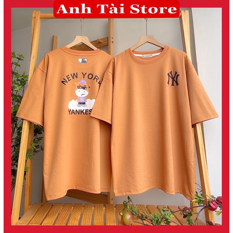 Giới thiệu Áo thun tay lỡ phông Unisex nam nữ chất liệu Cotton oversize đến 75kg form rộng in hình hoạ tiết chữ NY AT023