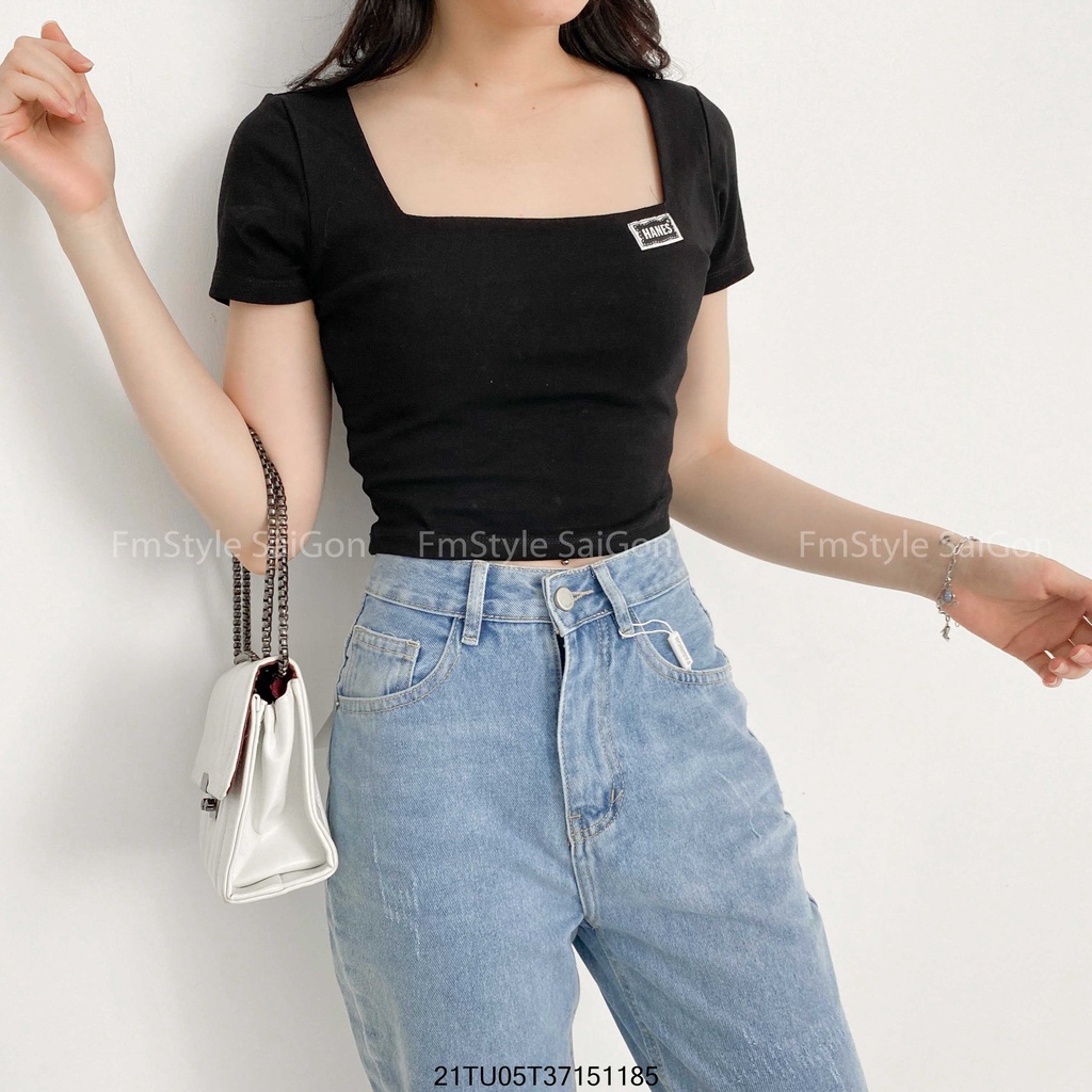 Giới thiệu Áo thun tay ngắn cổ vuông thêu HANES ulzzang VM STYLE 22ATU03T370101