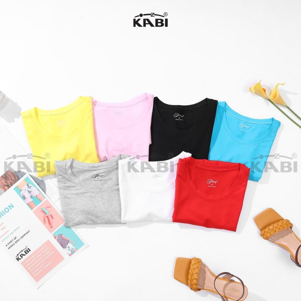 Giới thiệu [Mã FAMARAL1 giảm 10K đơn 50K] Áo thun tay ngắn nữ KABI áo thun cotton cổ tròn màu trơn form dáng ôm thoáng mát