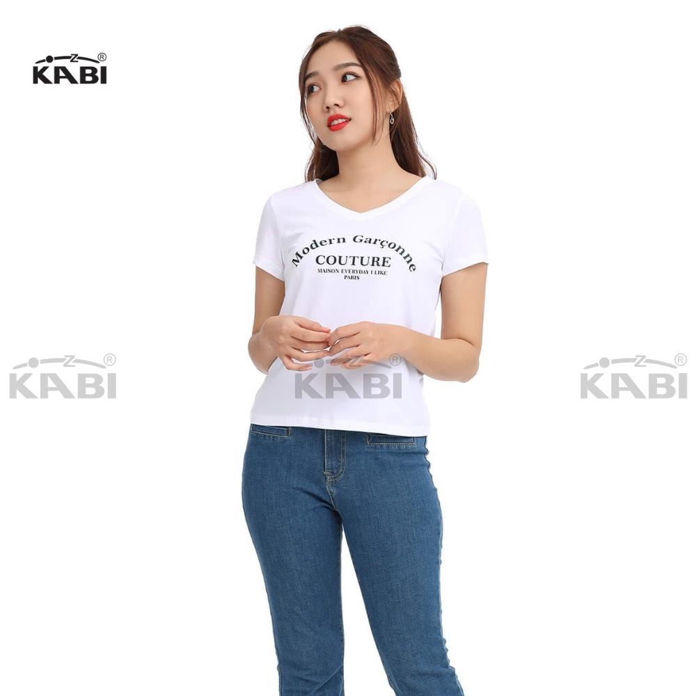 Giới thiệu Áo thun tay ngắn nữ KABI áo cotton cổ tim cổ v in chữ basic form dáng ôm - WAN005