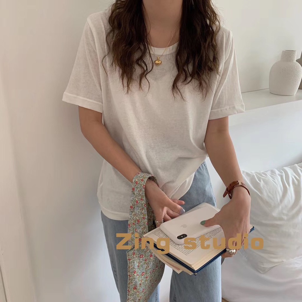 Áo thun xước mỏng dễ phối quần chân váy có bán kèm tại shop - Pumi