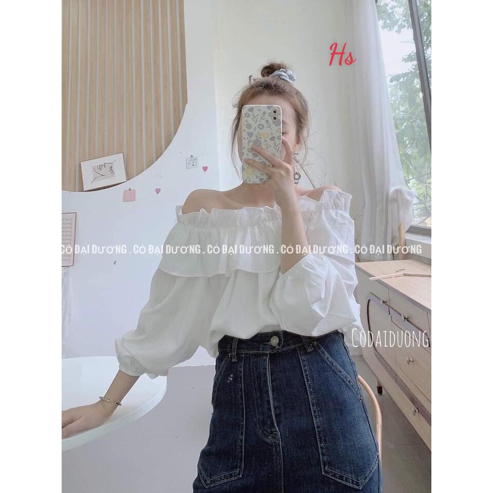 Áo trễ vai bèo tầng chun tay , chất vải xịn - Shop Q&V