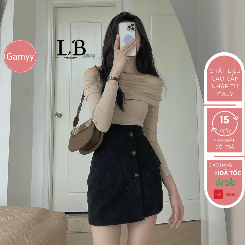 Giới thiệu Áo trễ vai Gamyy áo len tăm ngang vai, áo len gân dài tay nữ tính