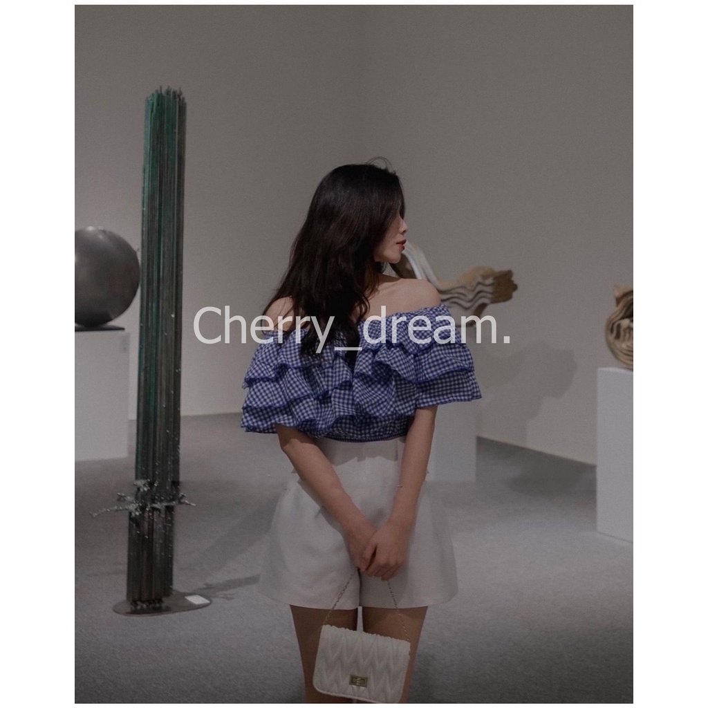 Thời Trang Nữ > Áo > Khác || Áo trễ vai tầng dáng croptop kẻ caro, Áo kiểu nữ chất đũi