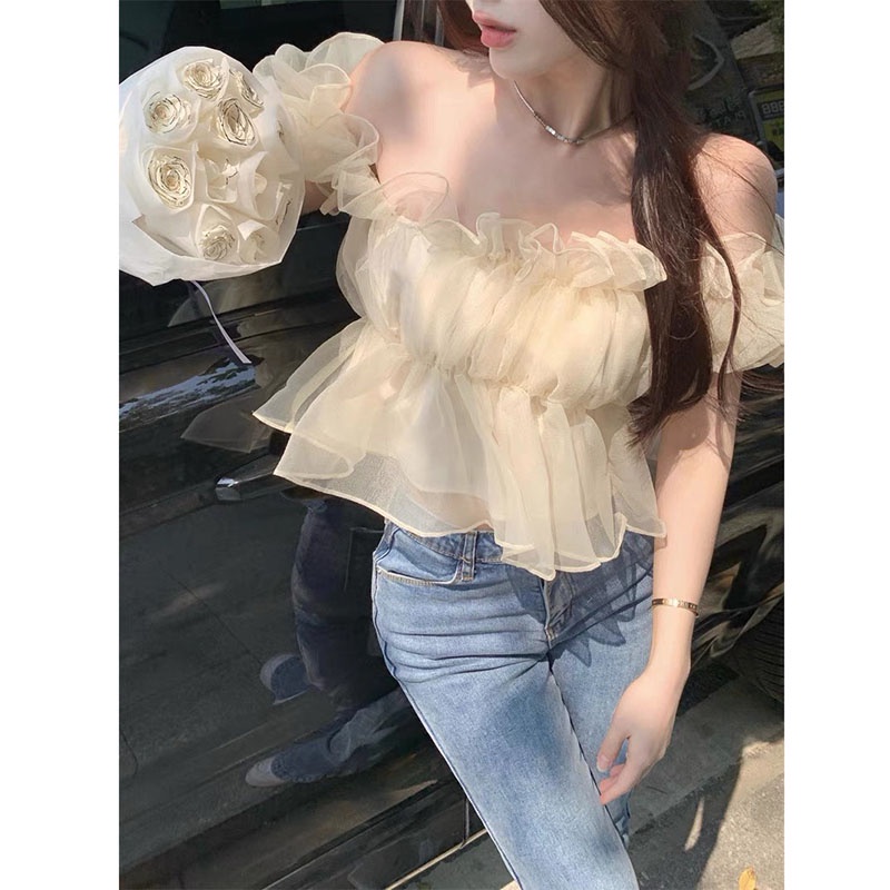 Thời Trang Nữ > Áo > Khác || Áo Trễ Vai Tơ Bồng 2 Lớp Hàng Quảng Châu M6877-Violet