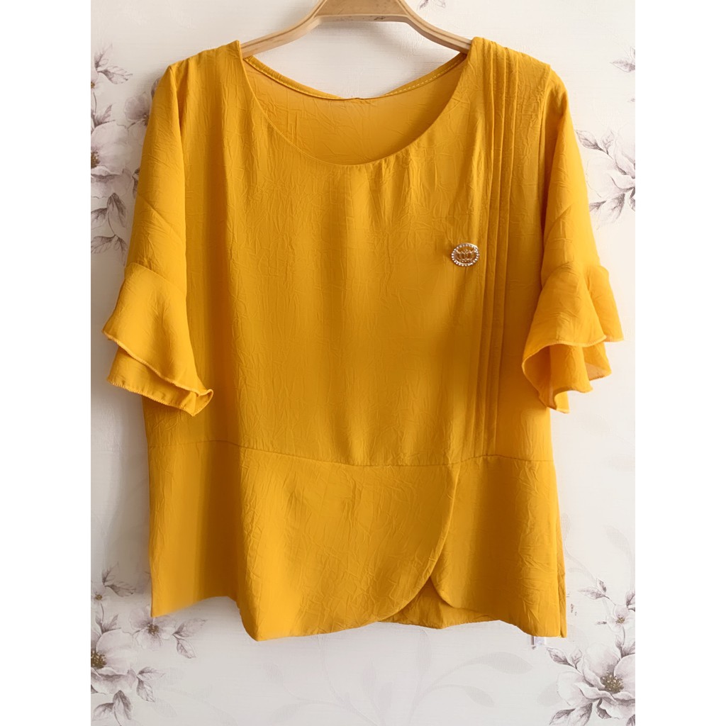 Thời Trang Nữ > Áo > Áo sơ mi || Áo trung niên voan gấp tay bèo đính khoen (Form ngắn - Dưới 52kg)