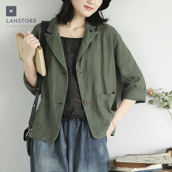 Thời Trang Nữ > Áo khoác > Áo blazer || Áo vest Blazer Linen nữ 1 lớp LAHSTORE, chất vải linen mềm mại, thời trang thu đông. Phong cách Hàn Quốc