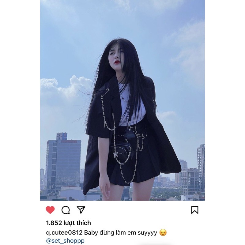 Đợt này chúng mình bổ sung thêm một mẫu vest mới bộ phụ kiện dây chain và ghim băng gắn bướm cực trend.