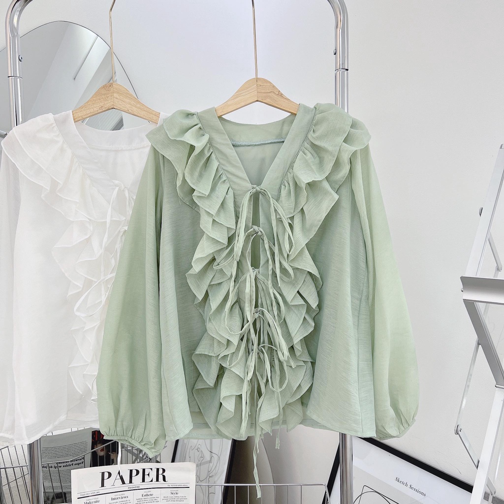 Thời Trang Nữ > Áo > Khác || ÁO VIỀN BÈO THẮT NƠ TRƯỚC