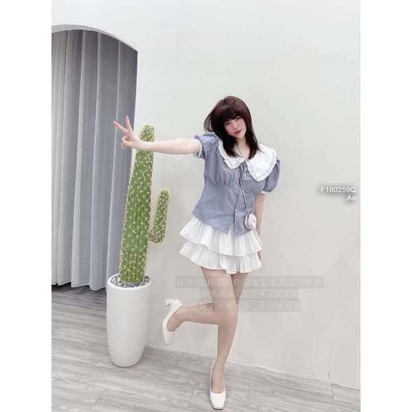 Thời Trang Nữ > Áo > Áo sơ mi || Áo xám cổ ren trắng